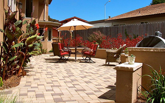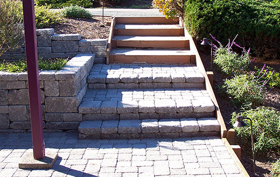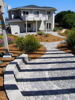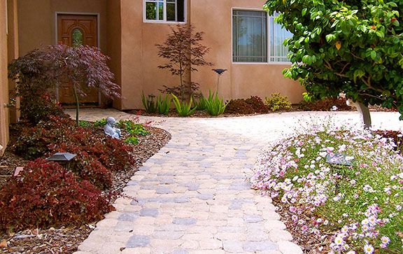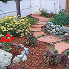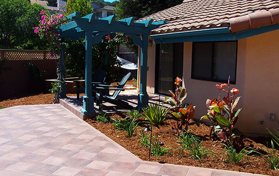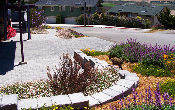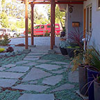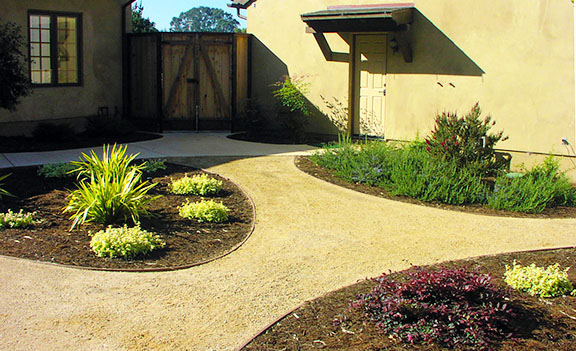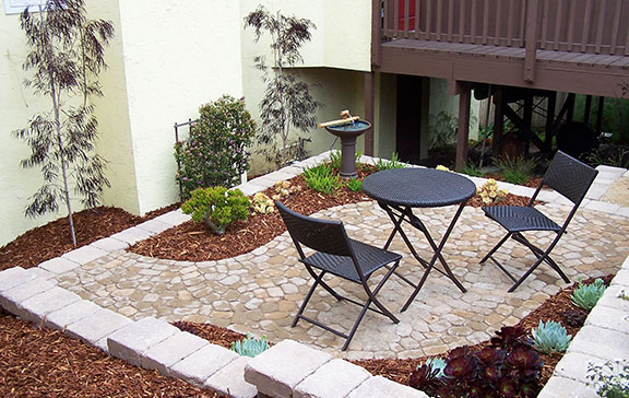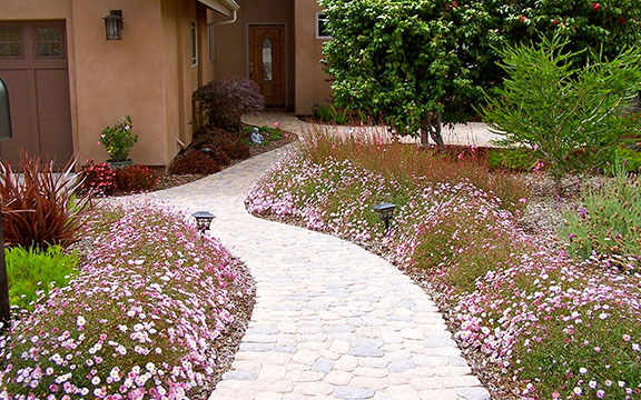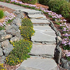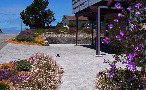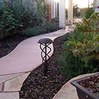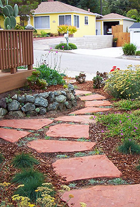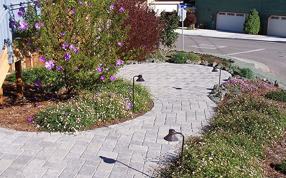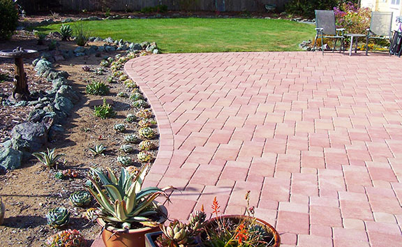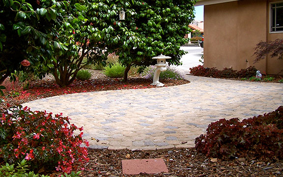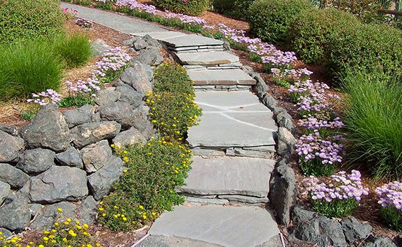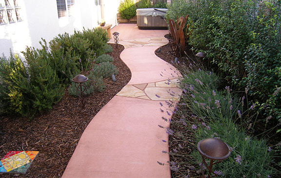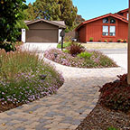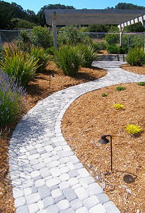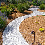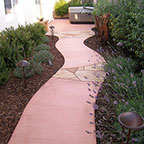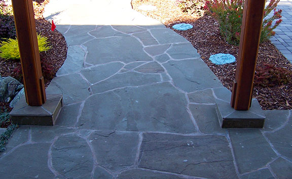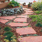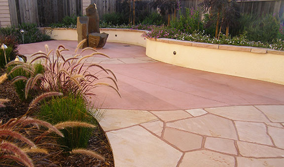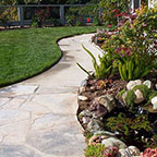 patios, walks & driveways Concrete Concrete is a versatile material that can be crafted into many different styles. Pavers/Brick Many different styles and colors of pavers are available. Tile The versatiliy, wide selection, and more formal appearance are a few reasons why Tile is so popular in many of today's landscape projects. Flagstone The natural beauty and organic look and feel of Flagstone lends itself to many different landscape projects. Decking Different types of Decking materials are: Redwood, Tropical Hardwoods, such as Ipe, and Composite materials, such as Trex. The materials listed above can be obtained from local vendors: