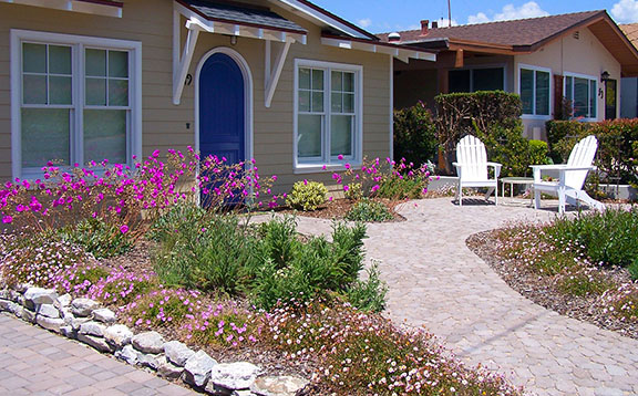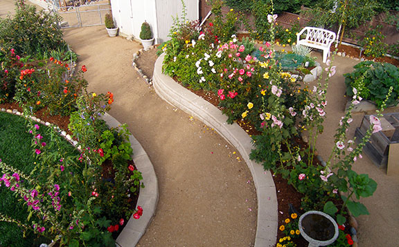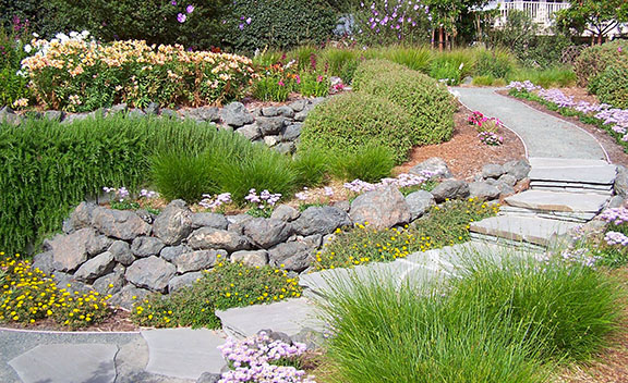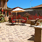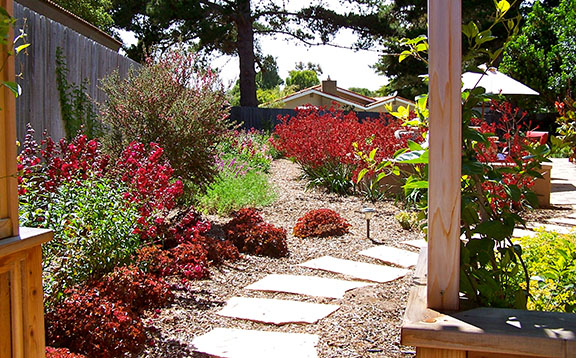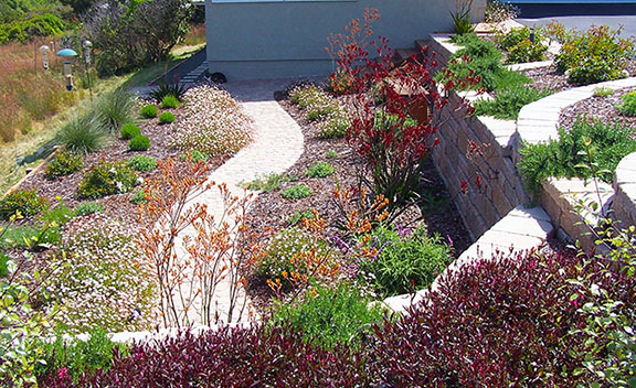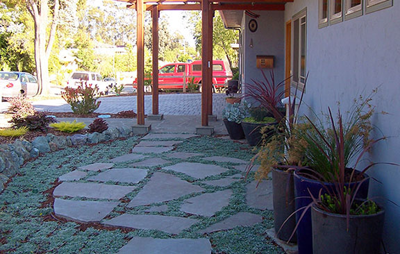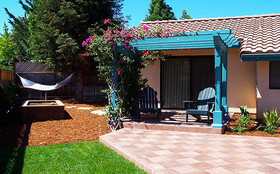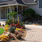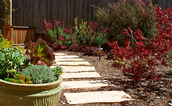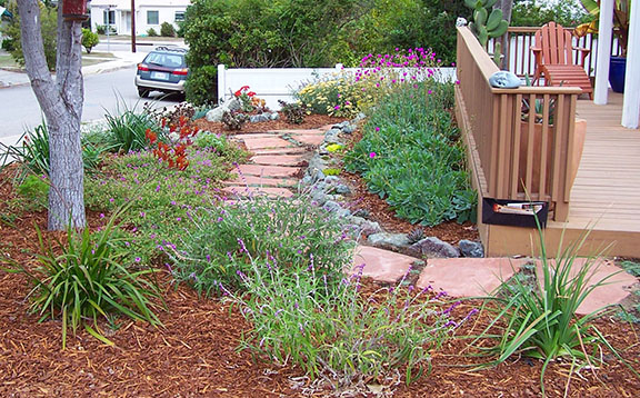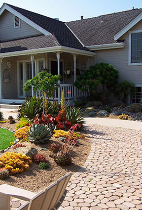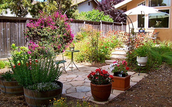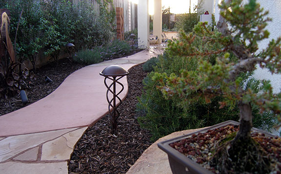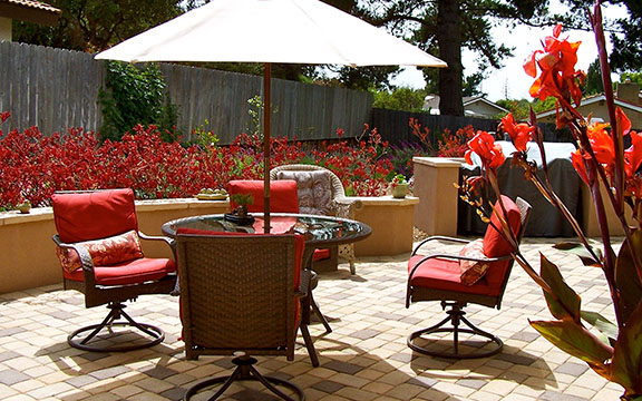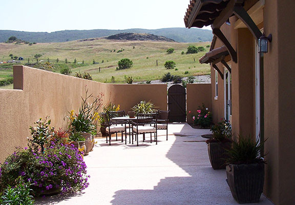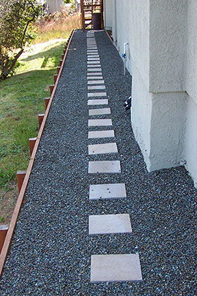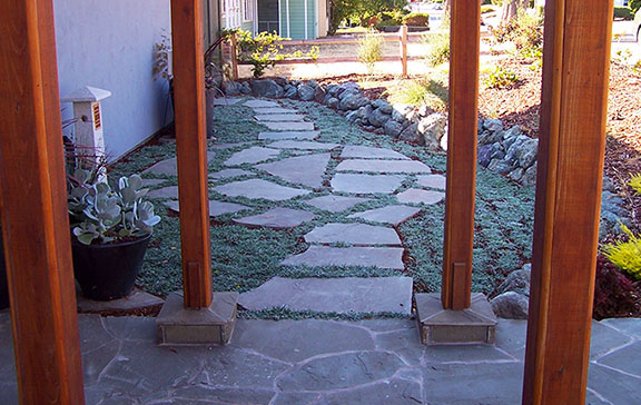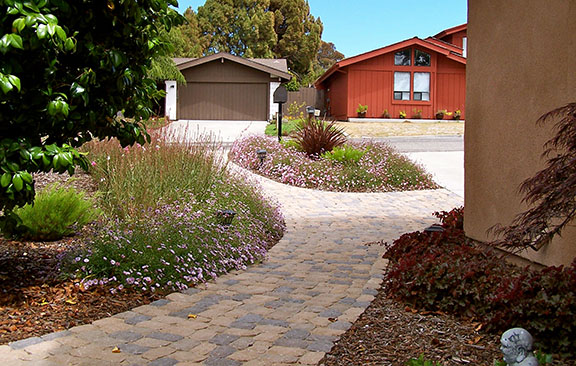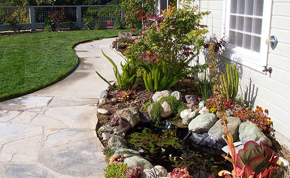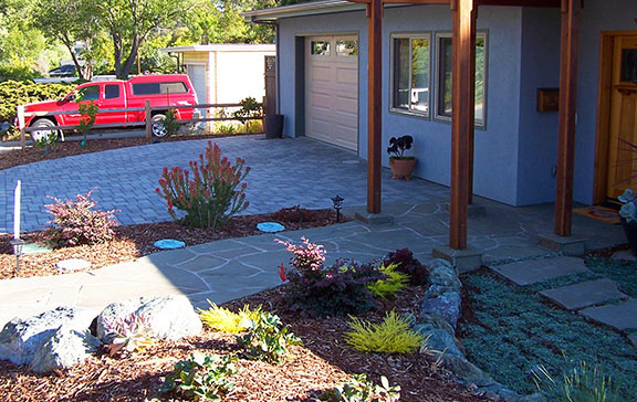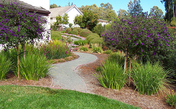 patios, walks & driveways Concrete Concrete is a versatile material that can be crafted into many different styles. Pavers/Brick Many different styles and colors of pavers are available. Tile The versatiliy, wide selection, and more formal appearance are a few reasons why Tile is so popular in many of today's landscape projects. Flagstone The natural beauty and organic look and feel of Flagstone lends itself to many different landscape projects. Decking Different types of Decking materials are: Redwood, Tropical Hardwoods, such as Ipe, and Composite materials, such as Trex. The materials listed above can be obtained from local vendors: